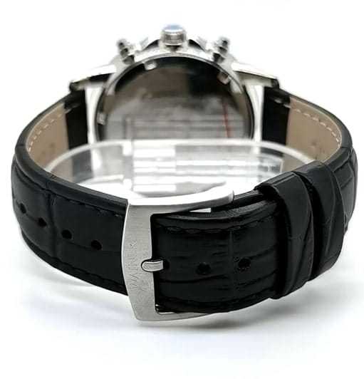Модель Wainer WA.19595-F сочетает швейцарскую точность, стильный дизайн и функциональность. Корпус диаметром 44 мм выполнен из нержавеющей стали 316L, обеспечивающей прочность и долговечность. Циферблат оформлен в динамичном стиле, дополнен хронографомХронографФункция позволяет измерять отрезки времени с особой точностью: часы, минуты, секунды. Верным признаком хронографа является наличие на циферблате 3 дополнительных окошек-счётчиков. для точного измерения времени, а сапфировое стеклоСапфировое стеклоПрочный и надёжный материал из кристалла сапфира синтетического происхождения, характеризующийся особой твёрдостью и устойчивостью к царапинам и повреждениям. защищает дисплей от царапин и механических повреждений. Часы оснащены кварцевым механизмом, обеспечивающим стабильную точность. Черный кожаный ремешок гарантирует комфортное ношение и долговечность. Водонепроницаемость до 50 метров защищает часы от случайных брызг и дождя. Wainer WA.19595-F — это стильный аксессуар для мужчин, ценящих швейцарское качество, современные технологии и классическую элегантность.