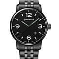 Швейцарские мужские часы в классическом стиле Wenger 01.1741.119, кварцевый механизм с высокой точностью. Класс водозащиты: 100 метров, позволит плавать, нырять и заниматься другими водными видами спорта. Корпус часов изготовлен из стали, черного цвета.