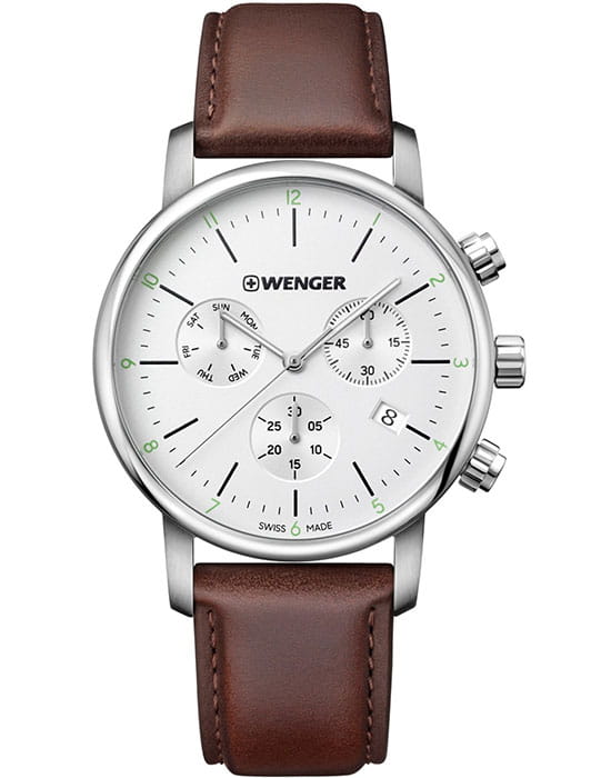 Мужские швейцарские часы с хронографом Wenger 01.1743.101, кварцевый механизм с высокой точностью. Класс водозащиты: 100 метров, позволит плавать, нырять и заниматься другими водными видами спорта. Корпус часов изготовлен из стали, цвета.